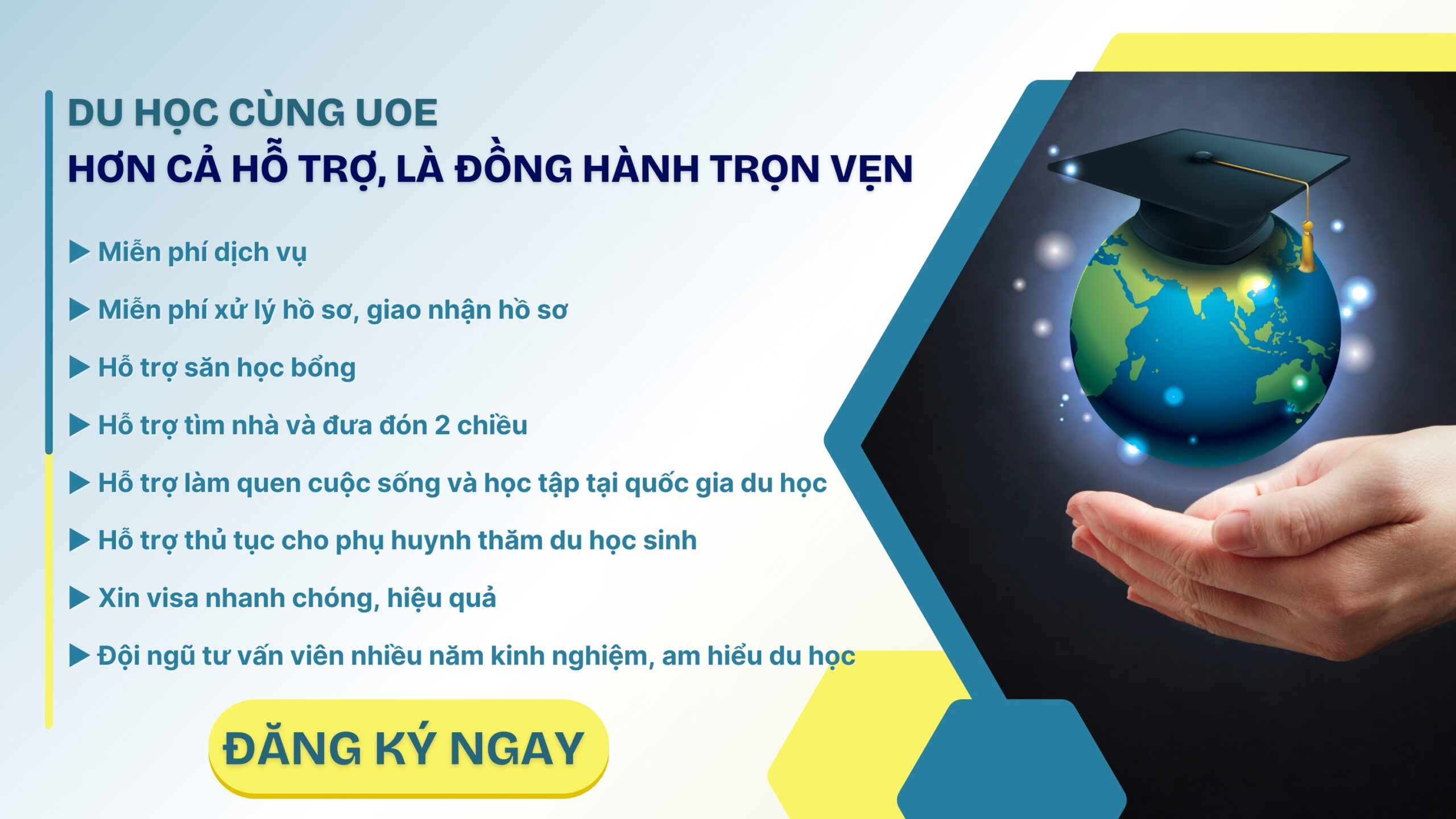 - Đồng hành tận tâm, hỗ trợ lâu dài: Không chỉ dừng ở việc nộp hồ sơ, UOE còn: